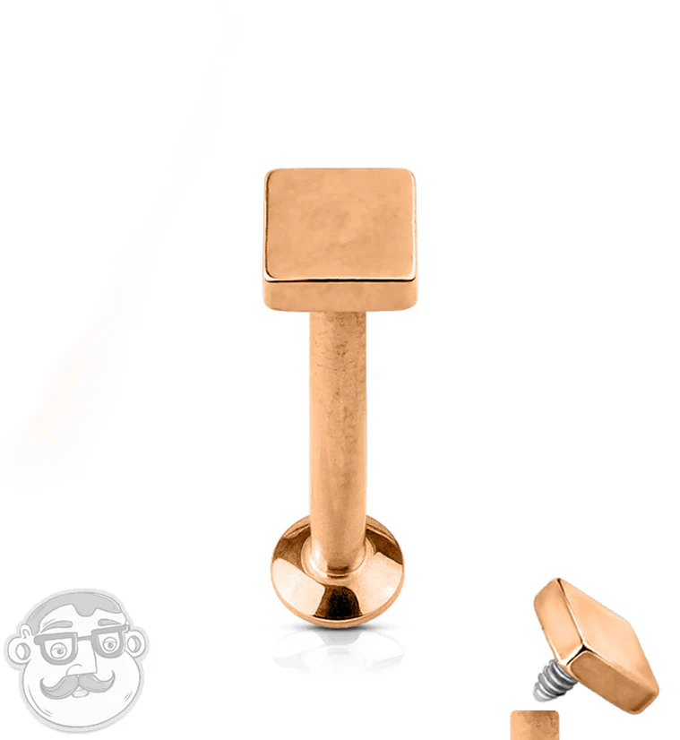 16G PVD Rose Gold Square Top Internally Threaded Flat Back Steel Post