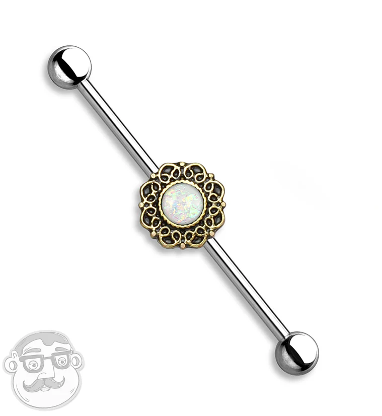Antique Golden Filigree with Opal Inlay Industrial Barbell