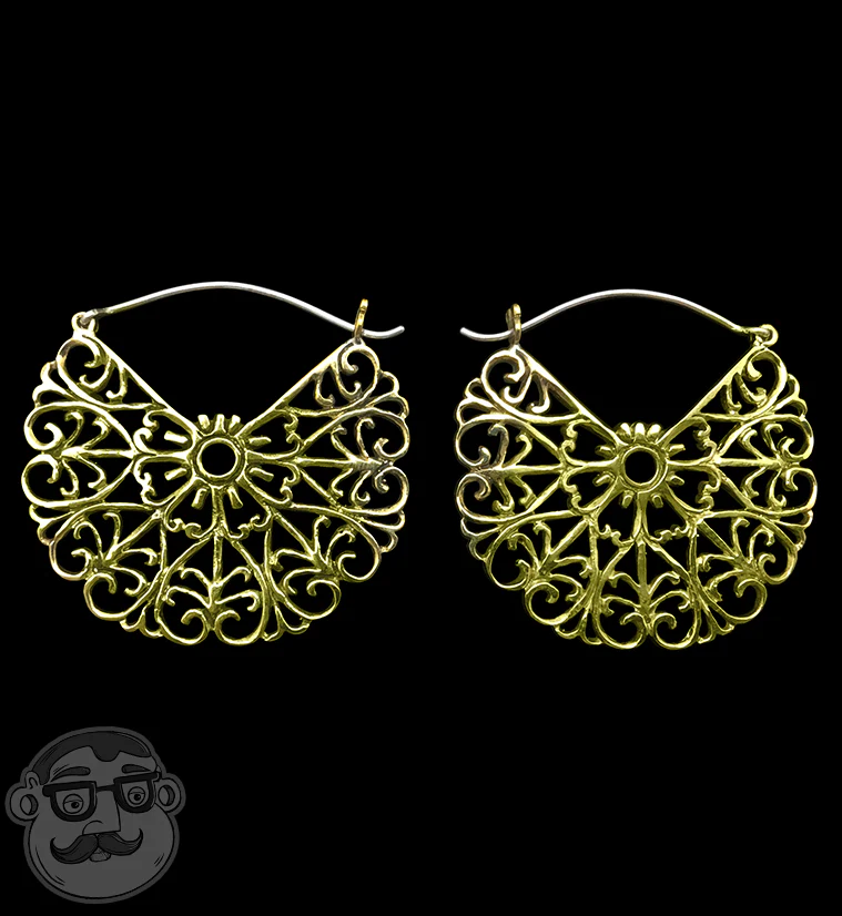 18G Filigree Disk Brass Hoop Earrings