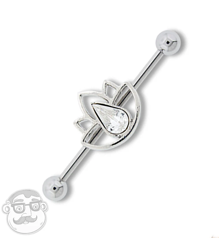 Lotus CZ Stainless Steel Industrial Barbell