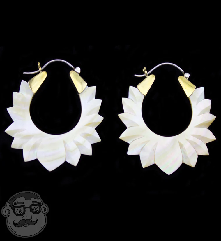 18G Lotus Mother of Pearl Hoop Earrings