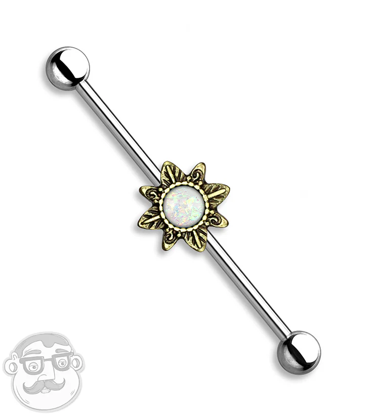 Antique Golden Tribal Star with Opal Inlay Industrial Barbell