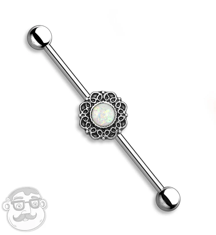 Filigree with Opal Inlay Industrial Barbell
