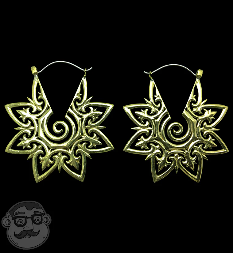 18G Tribal Star Brass Hoop Earrings