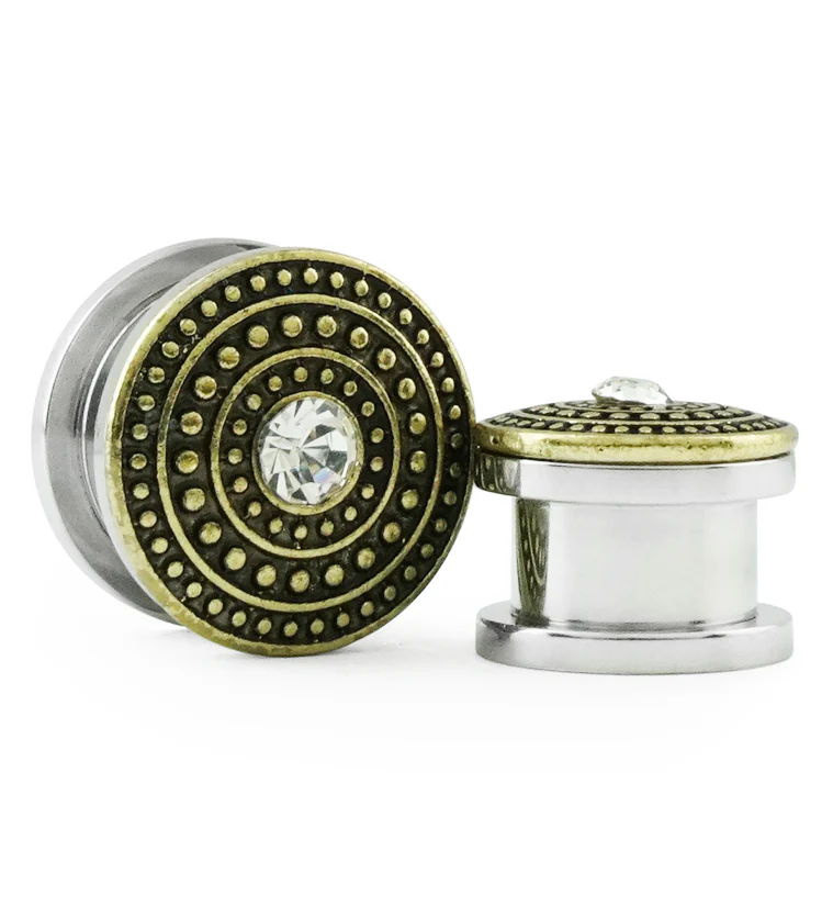 Golden Beaded CZ Top Stainless Steel Plugs