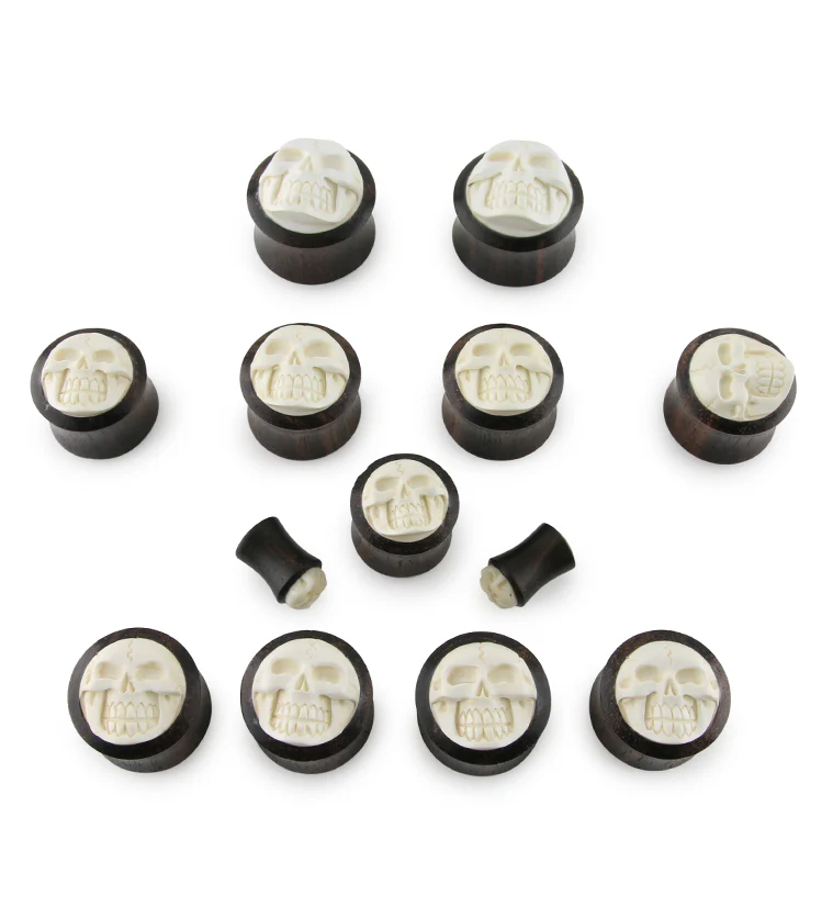 Sono Wood Plugs With Carved Skull Inlay