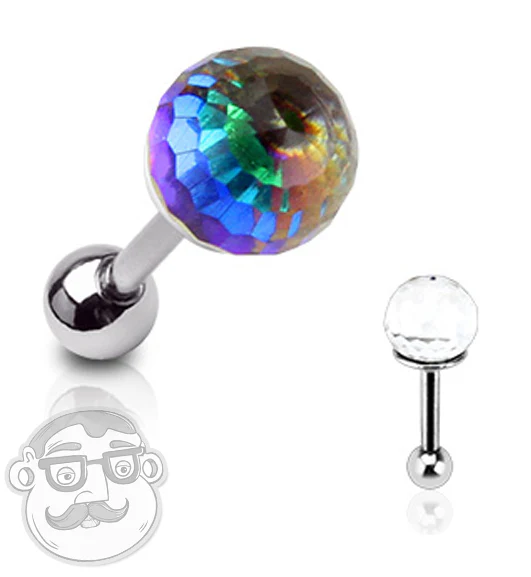 Crystal Ball Rainbow Top Plate Tragus Ring - Cartilage Barbell
