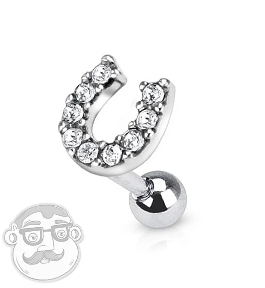 Lucky Horseshoe with CZ Tragus - Cartilage Piercing Stud