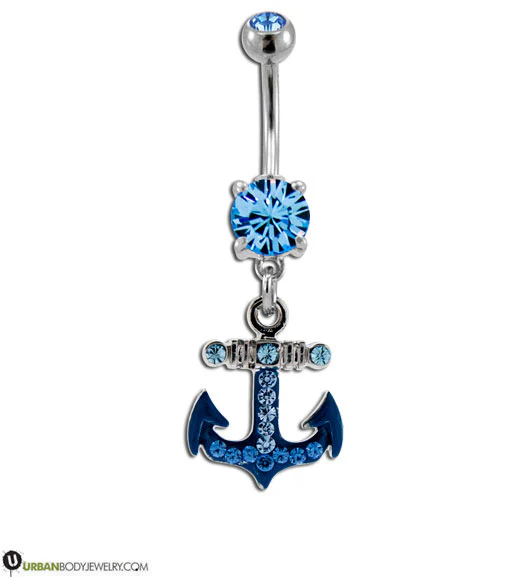 Blue CZ Diamond Anchor Belly Ring