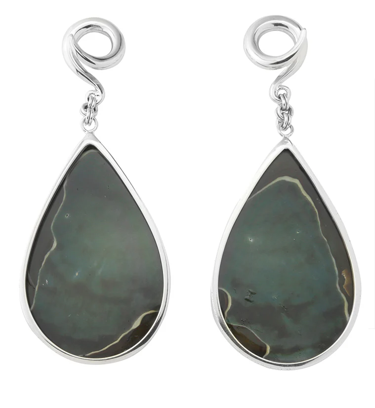 Green Polychrome Jasper Teardrop White Brass Ear Weights