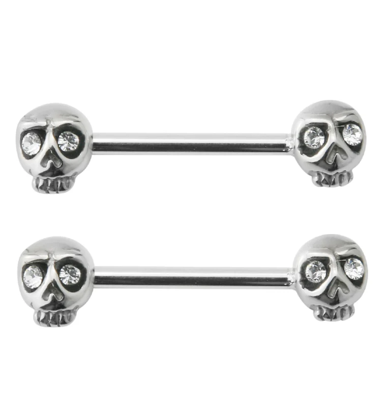 14G Double Skull Gem Nipple Ring Barbell