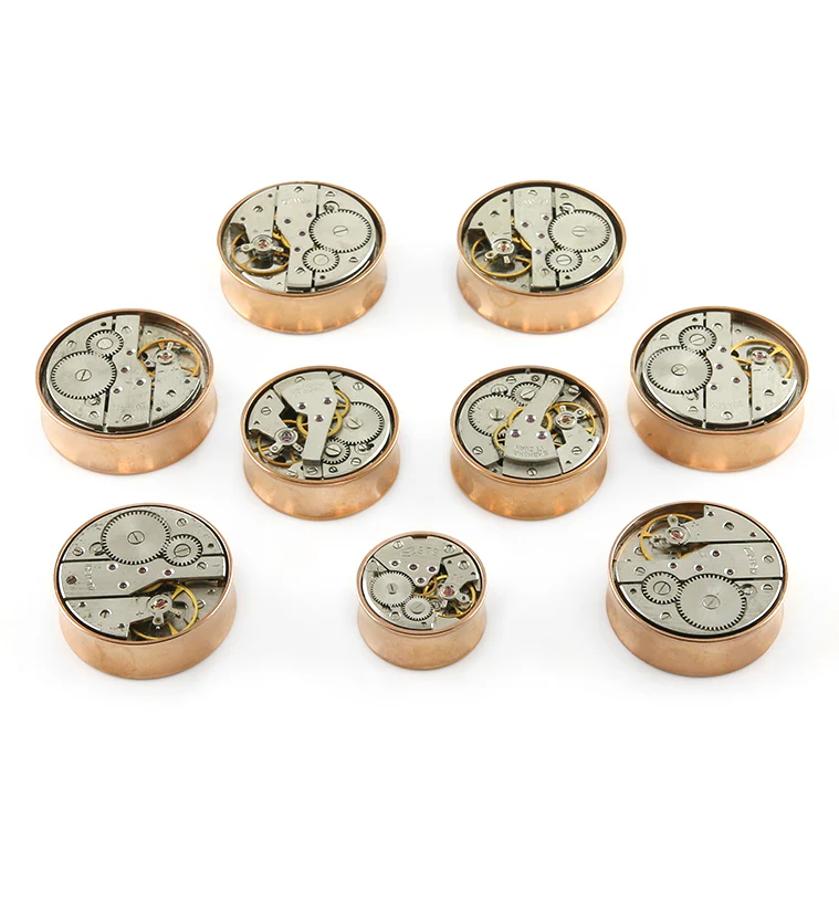 Steampunk Gear IP Rose Gold Stainless Steel Plugs
