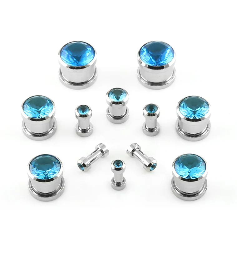 Blue CZ Diamond Steel Plugs