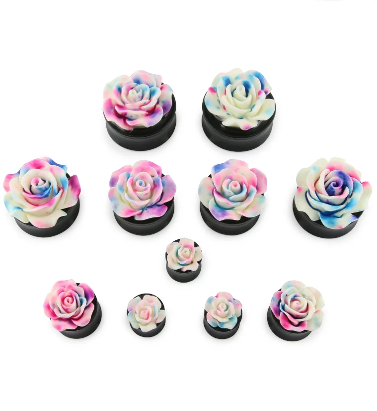 Cotton Candy Rosebud Black Acrylic Plugs