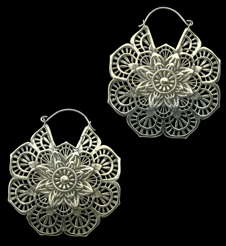 Mandala Flower Brass Titanium Hangers - Earrings