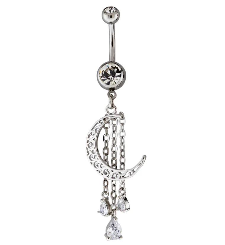 Crescent Dangle Chain CZ Belly Button Ring