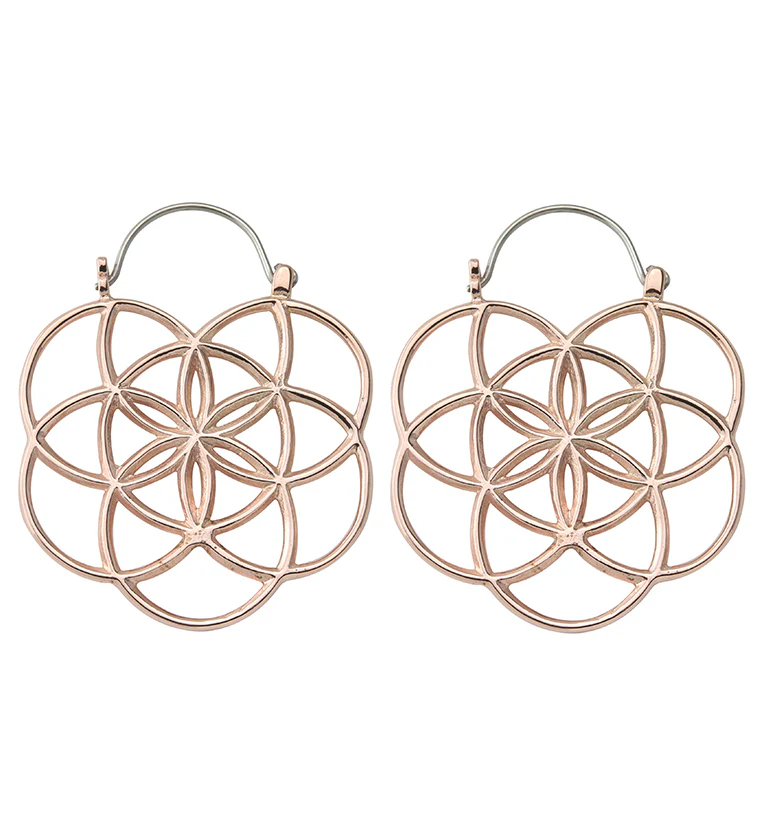 Rose Gold PVD Seed of Life Plug Hoops