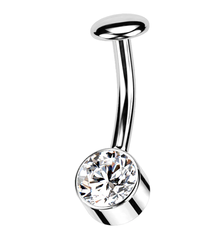 Bezel Clear CZ Titanium Threadless Floating Belly Button Ring