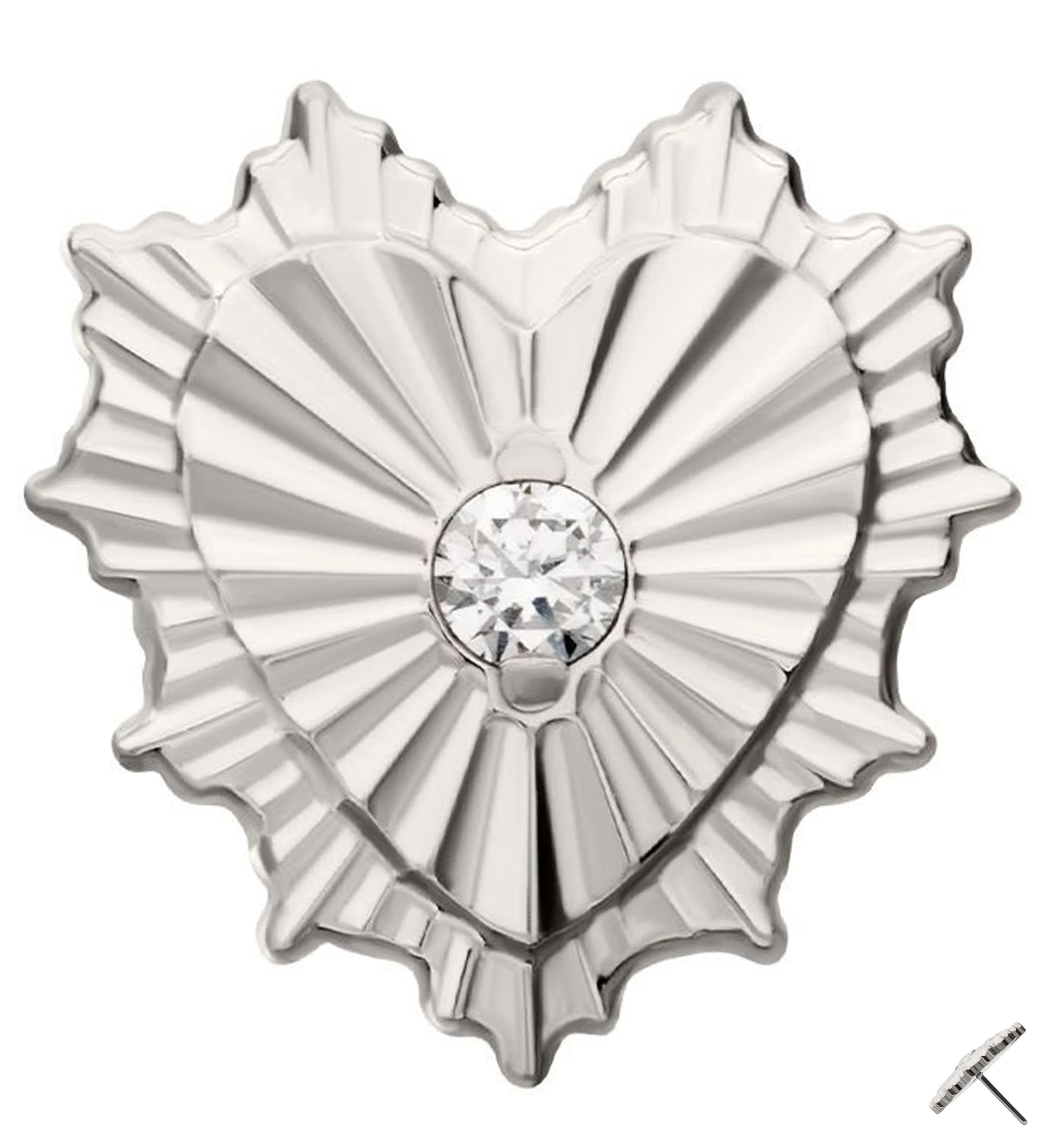 Sunburst Heart Clear CZ Titanium Threadless Top