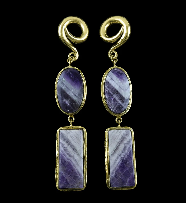 Double Amethyst Stone Brass Ear Weights