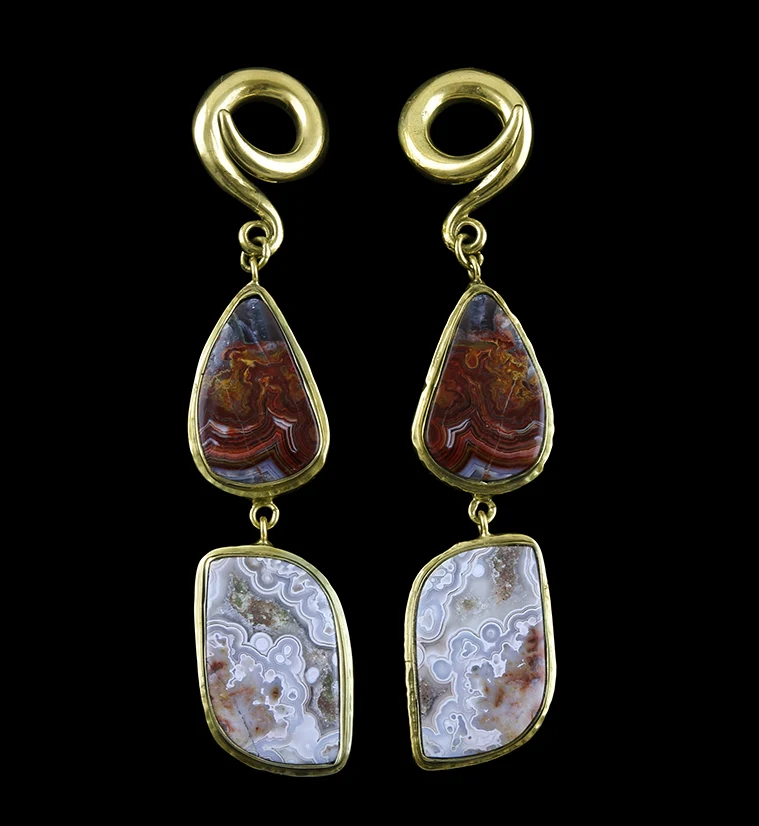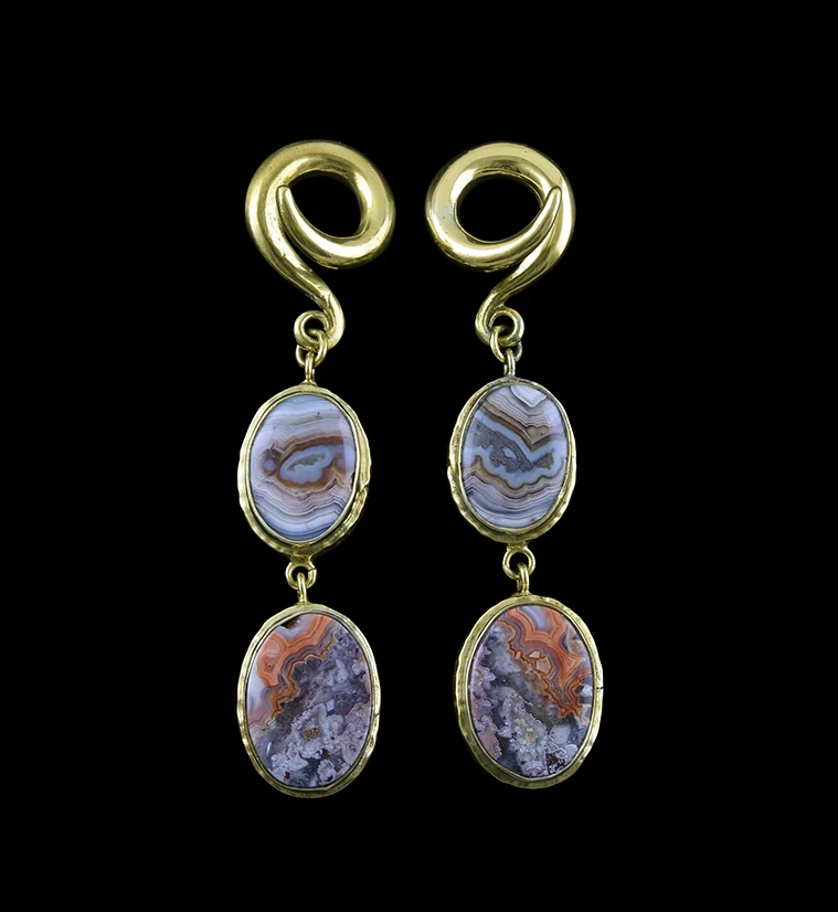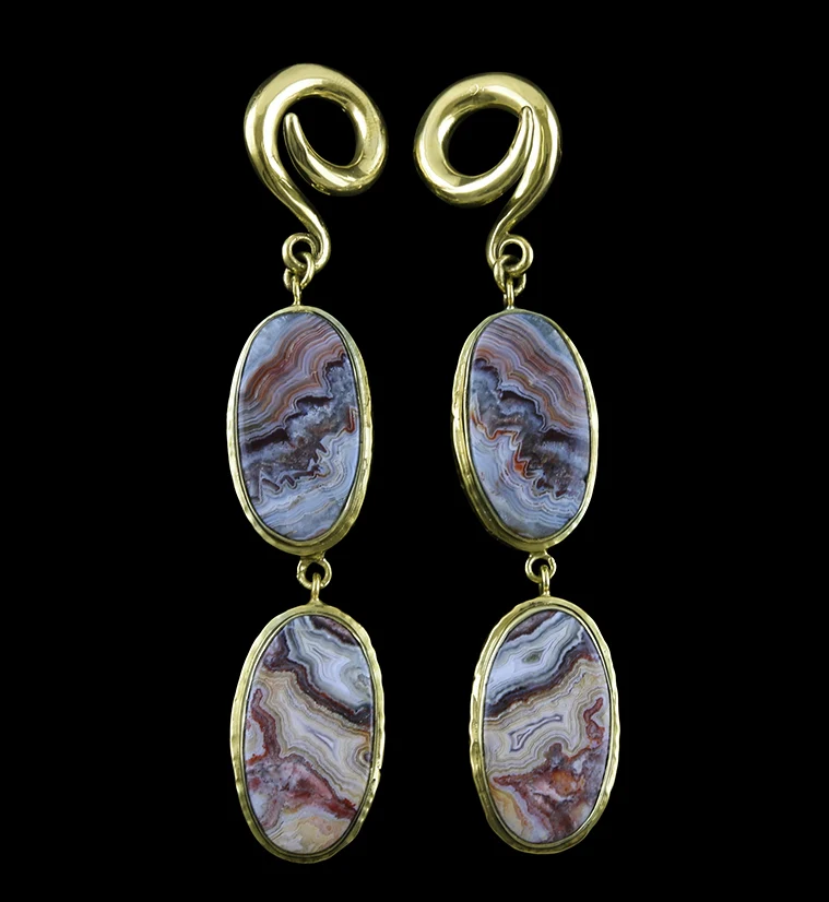 Laguna Lace Agate Stone Brass Ear Weights Version 4