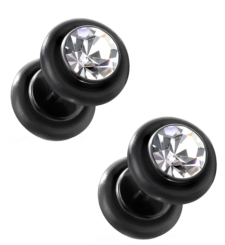 Clear CZ Black Fake Plugs
