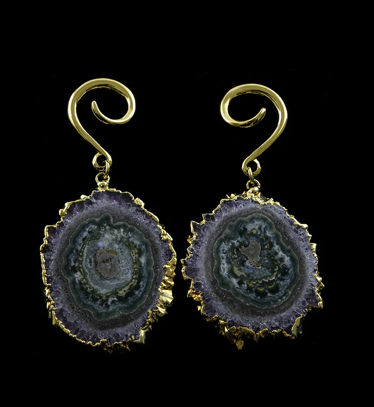 Amethyst Stalactite Brass Ear Weights Version 22