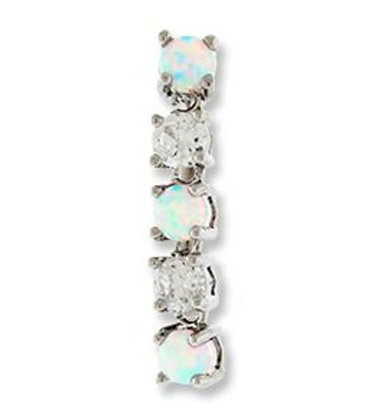 White Opal & CZ Drop Top Belly Button Ring