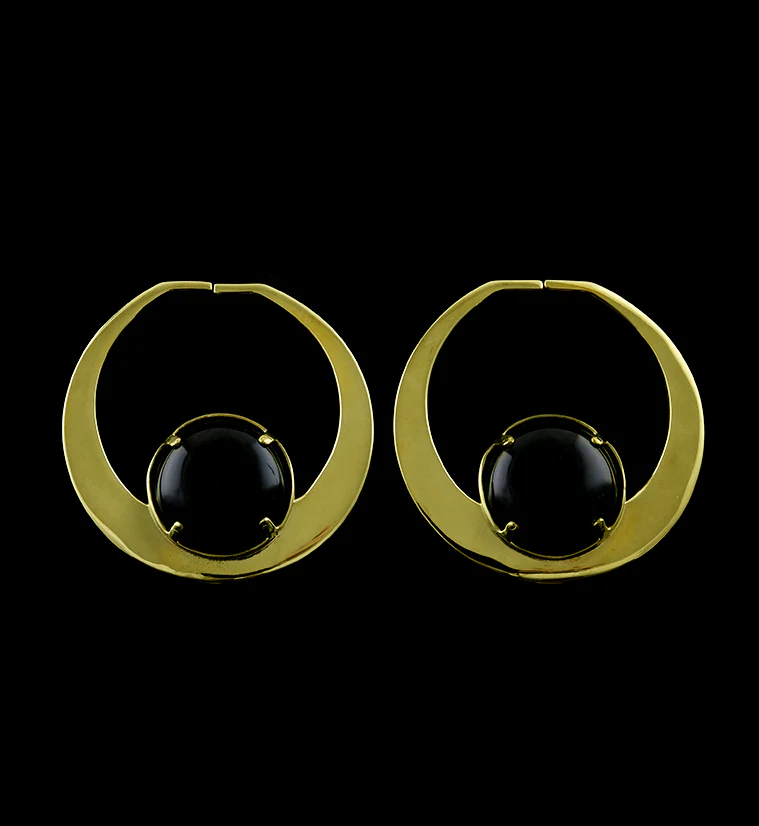 Golden Obsidian & Brass Plug Hoops