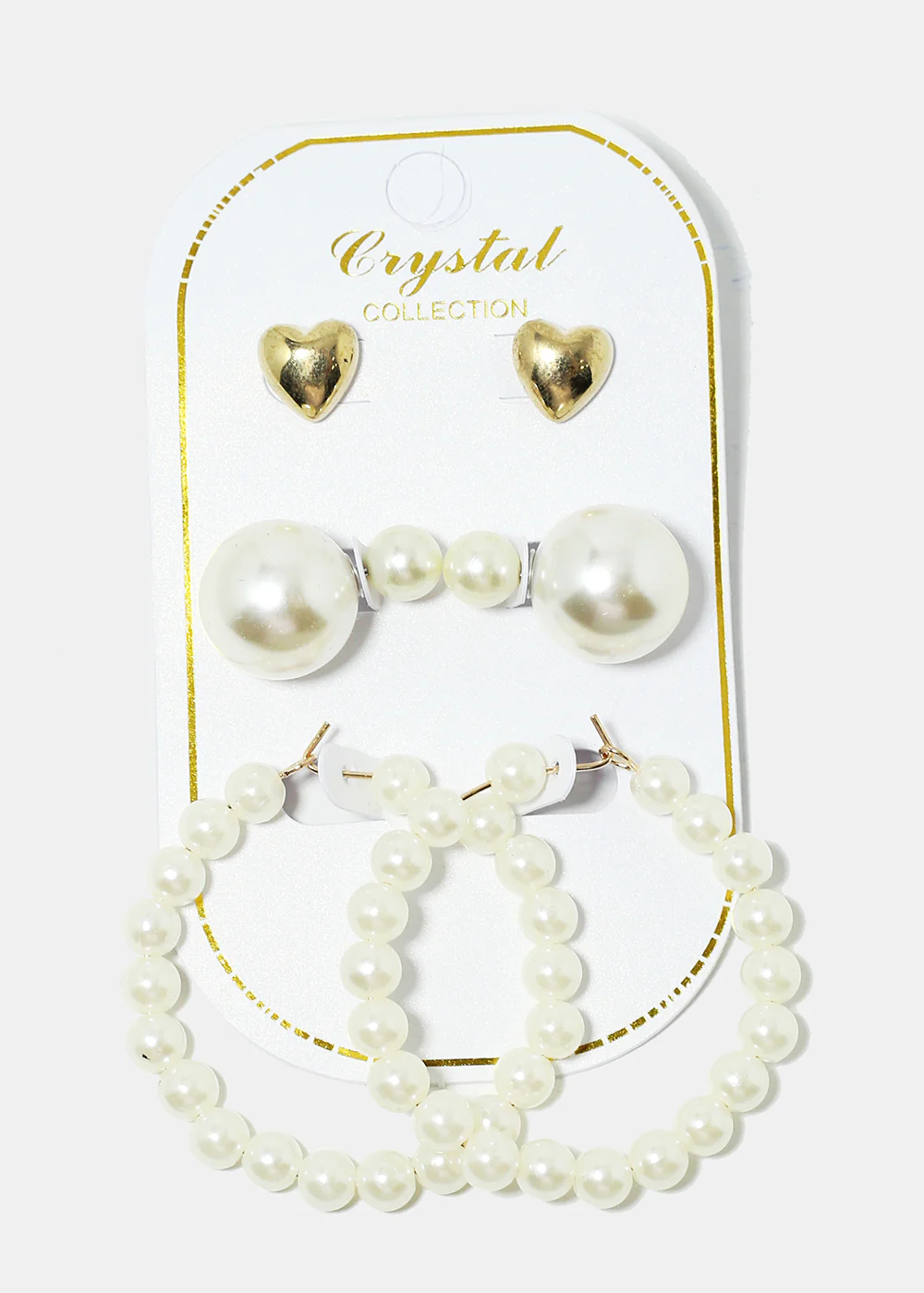 3-Pair Pearl Stud & Hoop Earrings