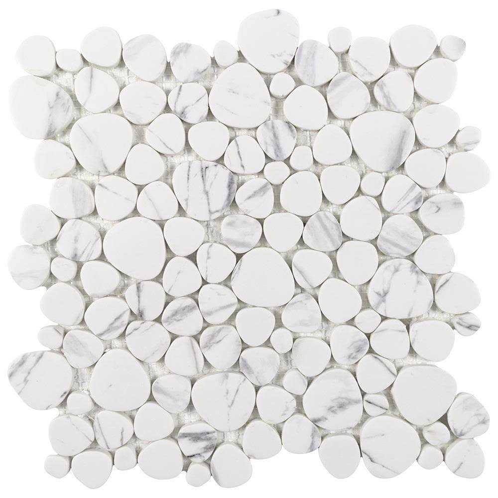Elida Ceramica Stonescape White Marble 12-in x 12-in Carrara-Look Recycled Glass Pebble Marble Look Tile LW2007001 - MT