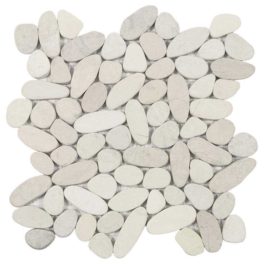 Elida Ceramica Pebble Beach White 12-in x 12-in Tumbled Natural Stone Marble/Limestone Pebble Floor and Wall Tile LW20121801 - MT