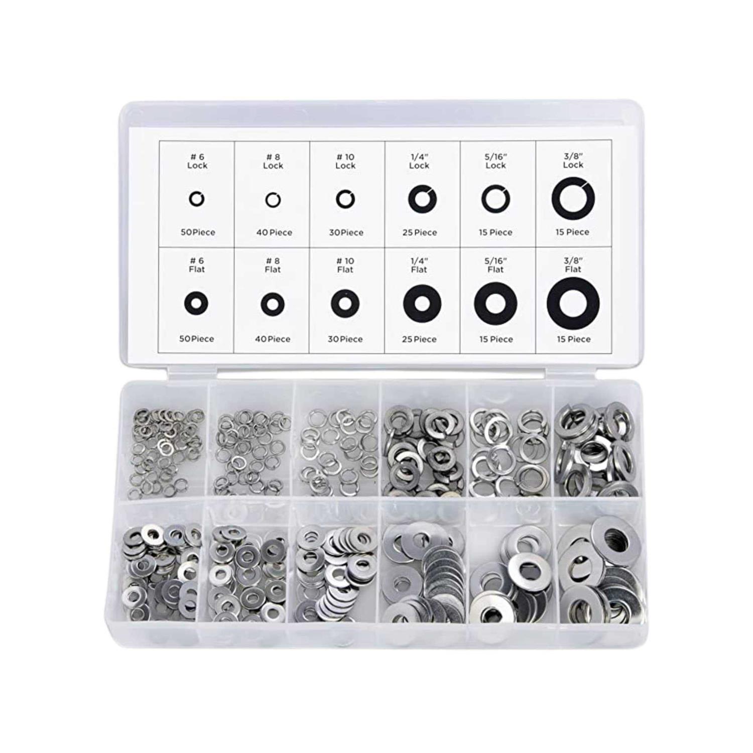 Neiko 50400A Split Lock and Flat Washer Assortment Stainless Steel 350 Piece - MT
