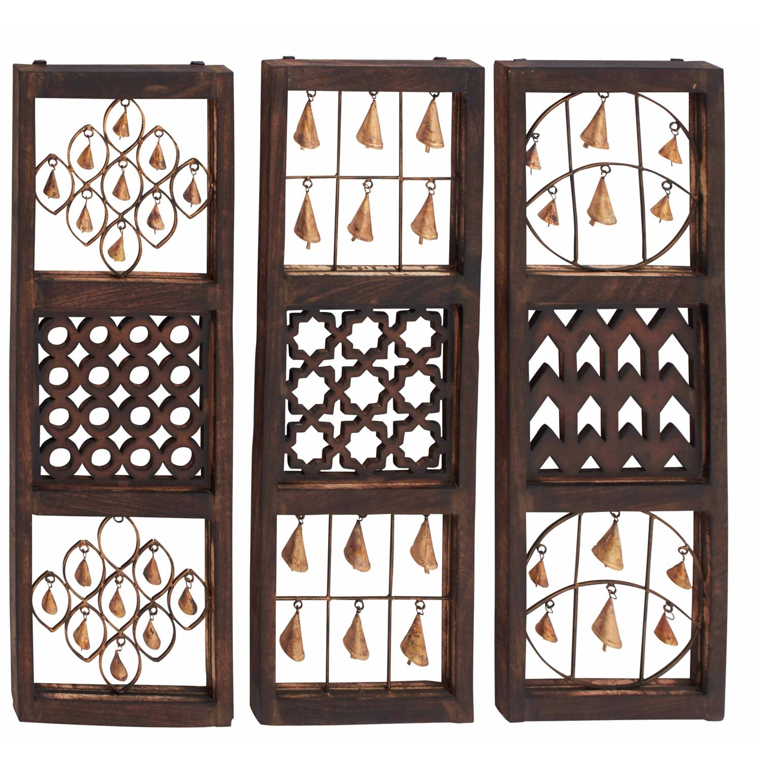 DecMode Brown Metal Intricately Carved Bell Wall Decor - MT