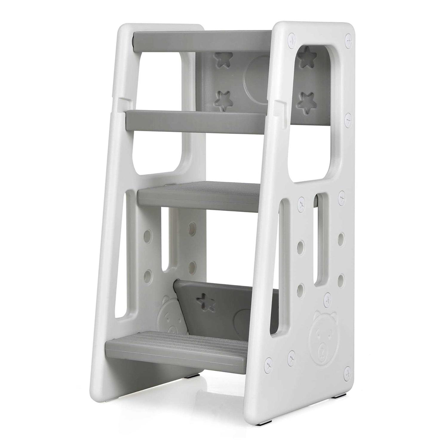 Costway Kids Kitchen Step Stool with Double Safety Rails Toddler Learning Stool