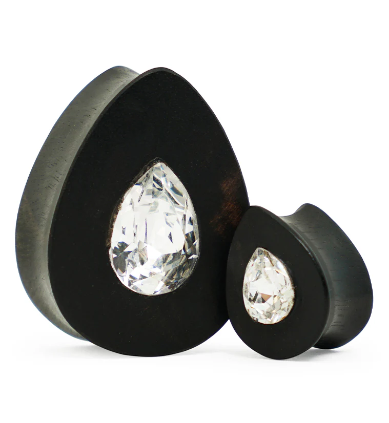 Areng Wooden Teardrop Plugs with Teardrop Swarovski CZ Inlay