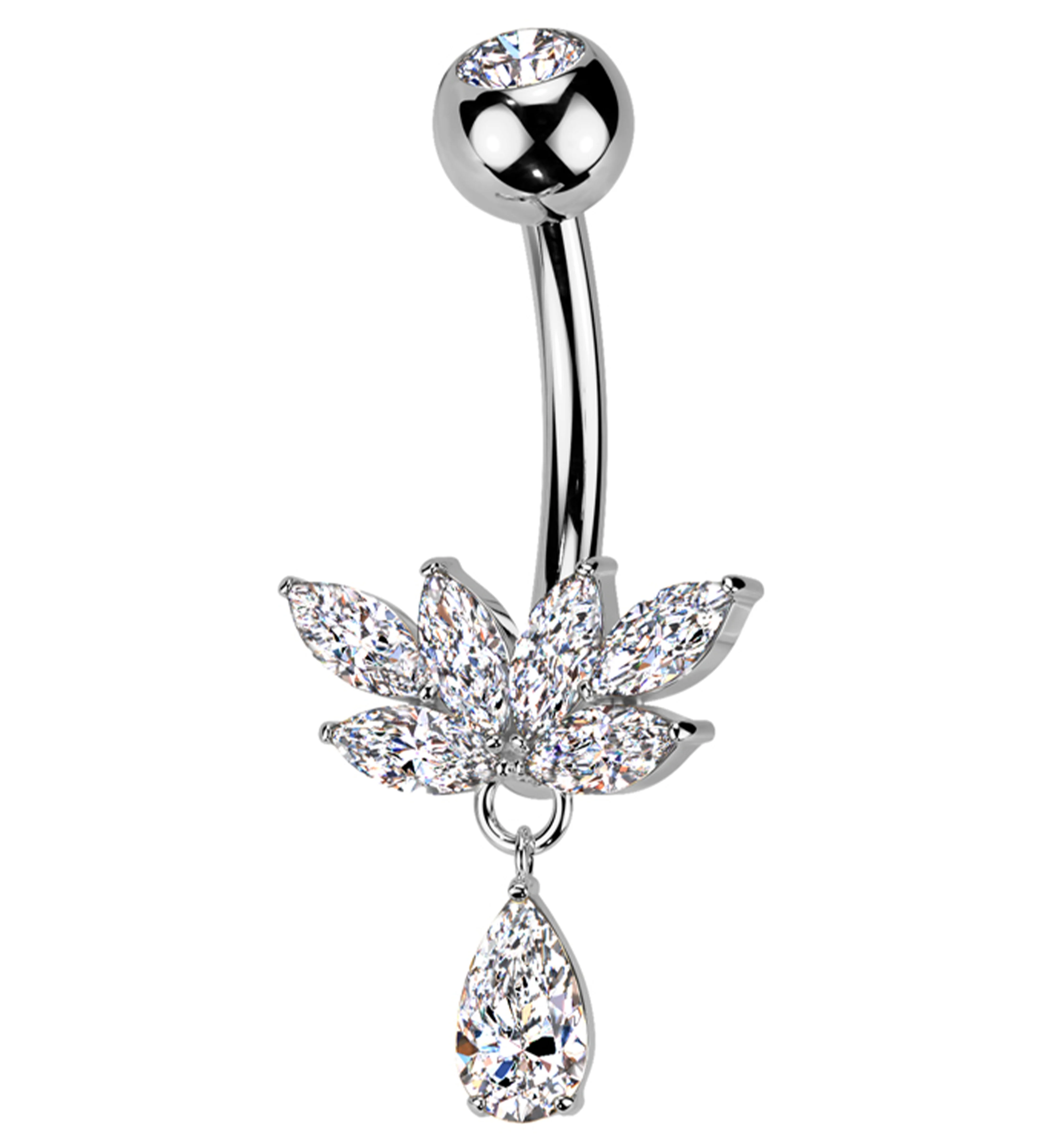 Laurel Clear CZ Teardrop Dangle Titanium Belly Button Ring