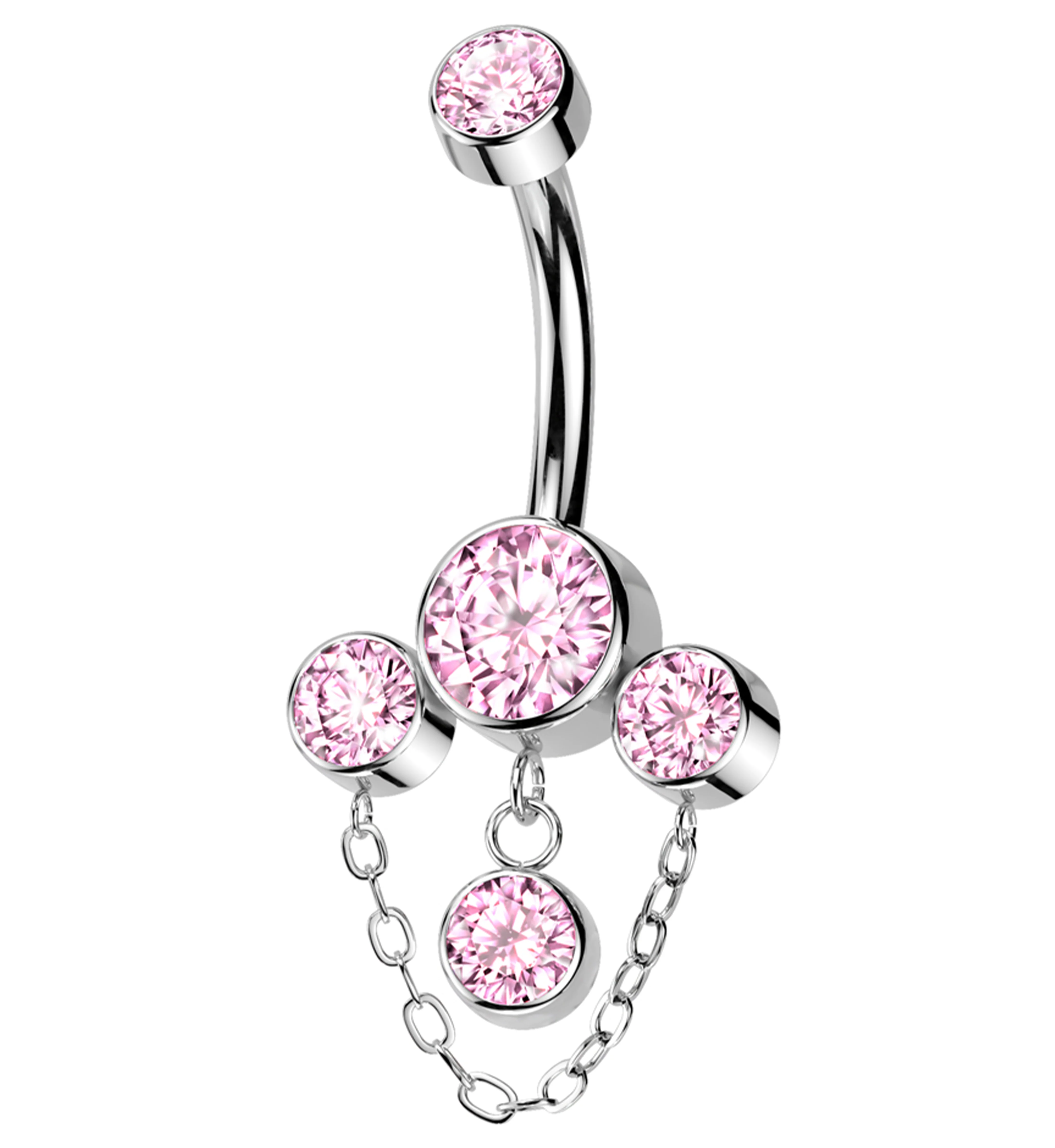 Triple Bezel Light Pink CZ Dangle Chain Titanium Internally Threaded Belly Button Ring