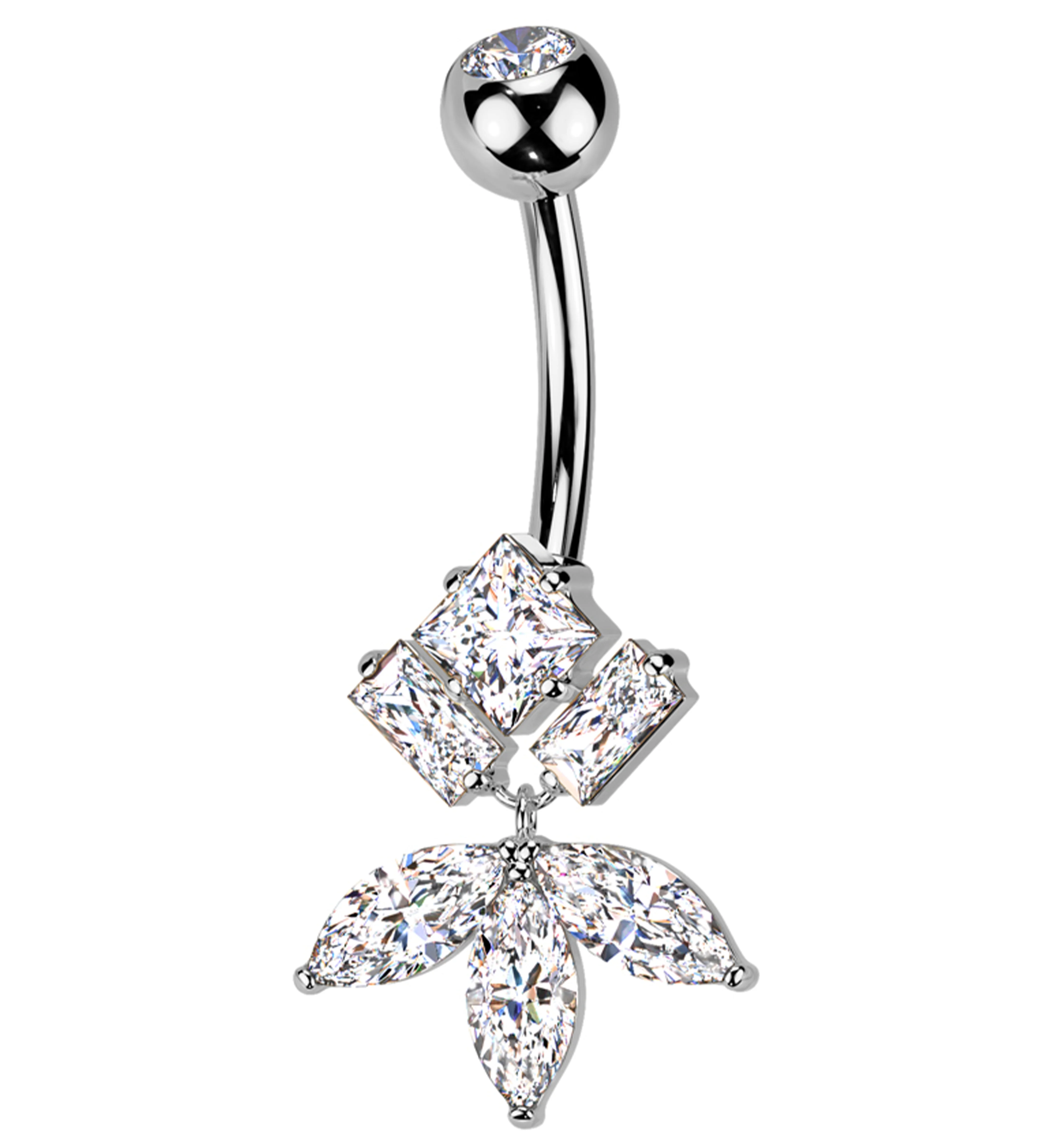 Geometric Dangle Clear CZ Titanium Belly Button Ring