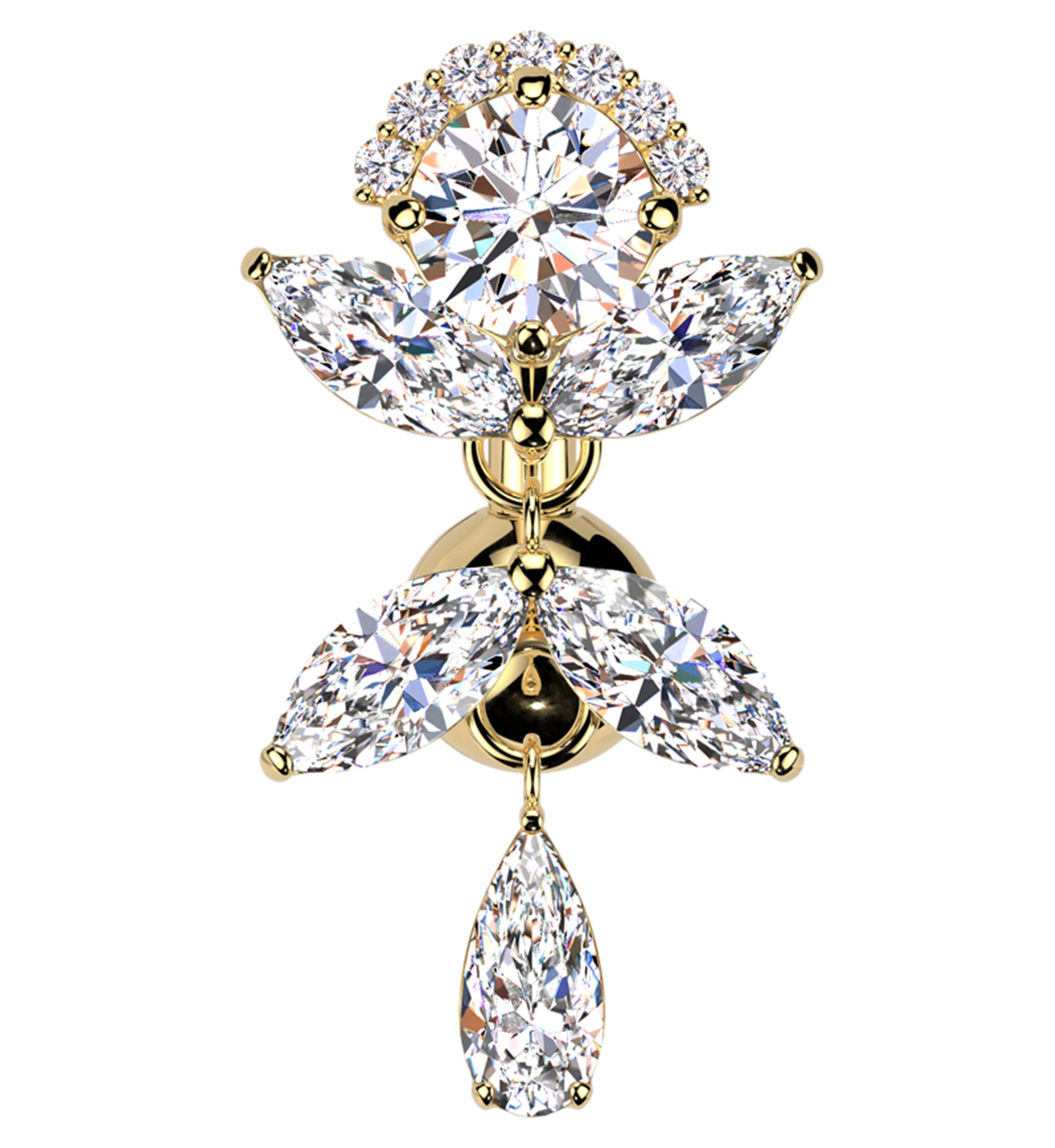 Gold PVD Dancing Flower Clear CZ Dangle Titanium Belly Button Ring