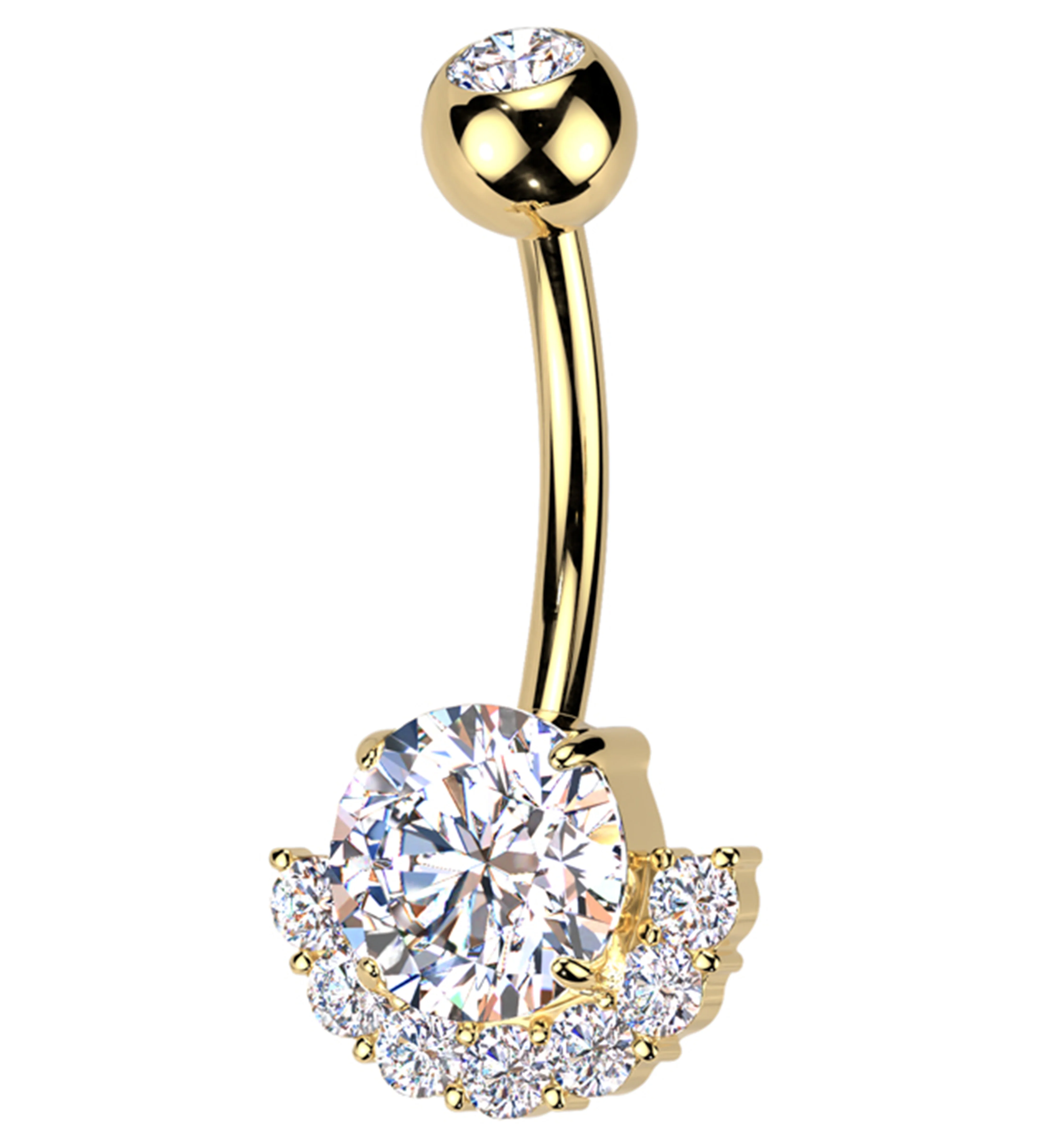 Gold PVD Half Circle Clear CZ Titanium Belly Button Ring