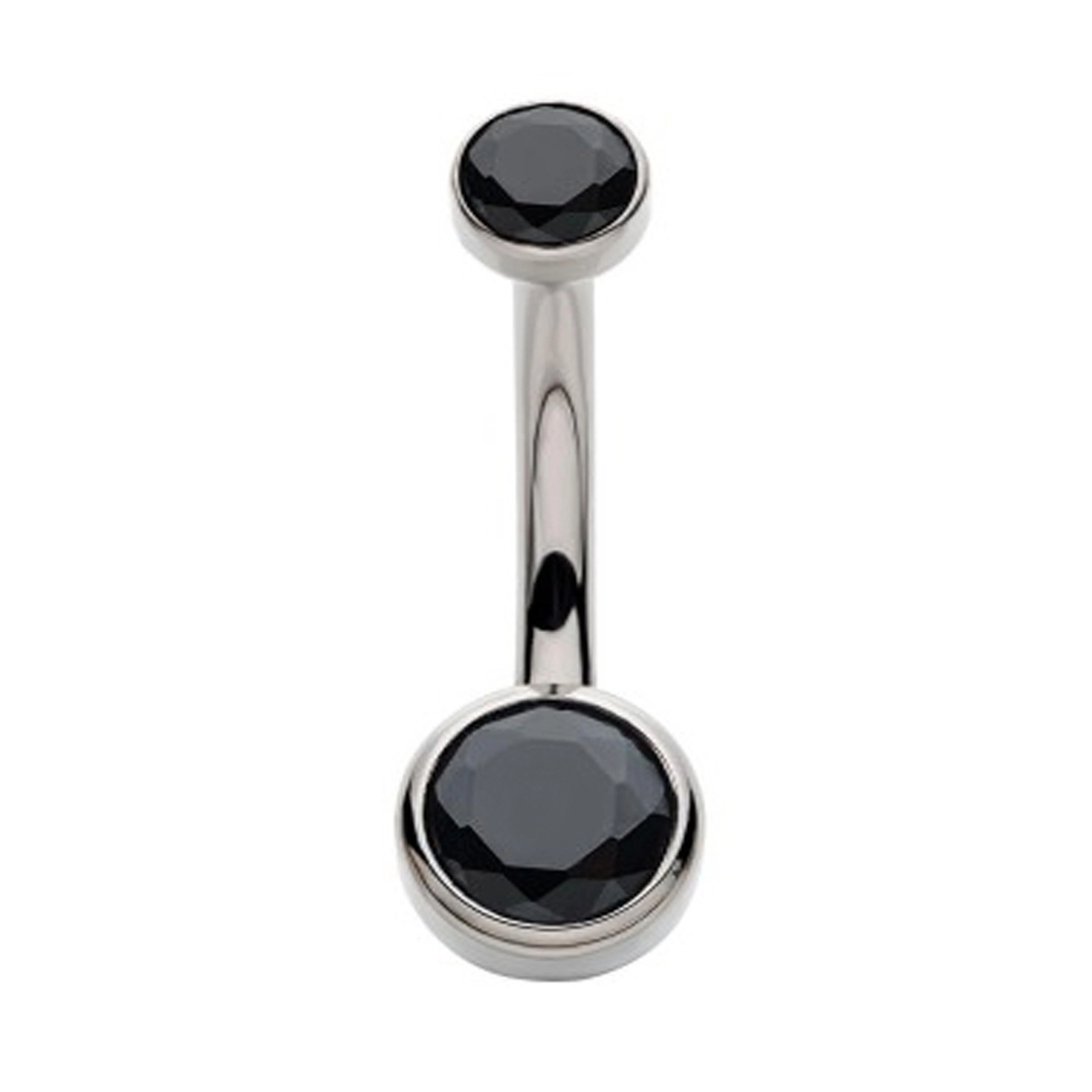 Black Double Flat Bezel CZ Titanium Belly Button Ring