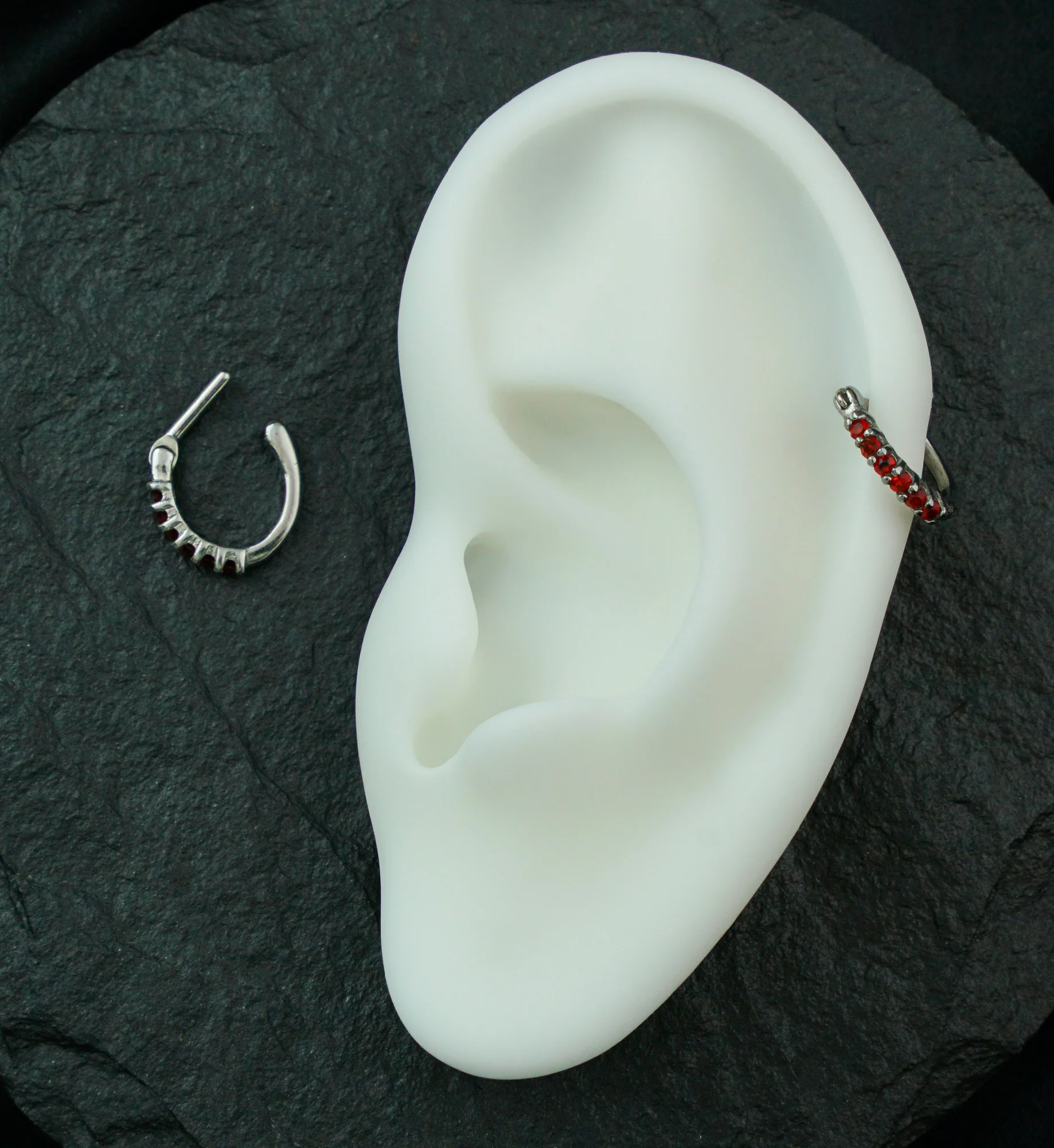 Side-Facing Red CZ Stainless Steel Hinged Segment D-Ring