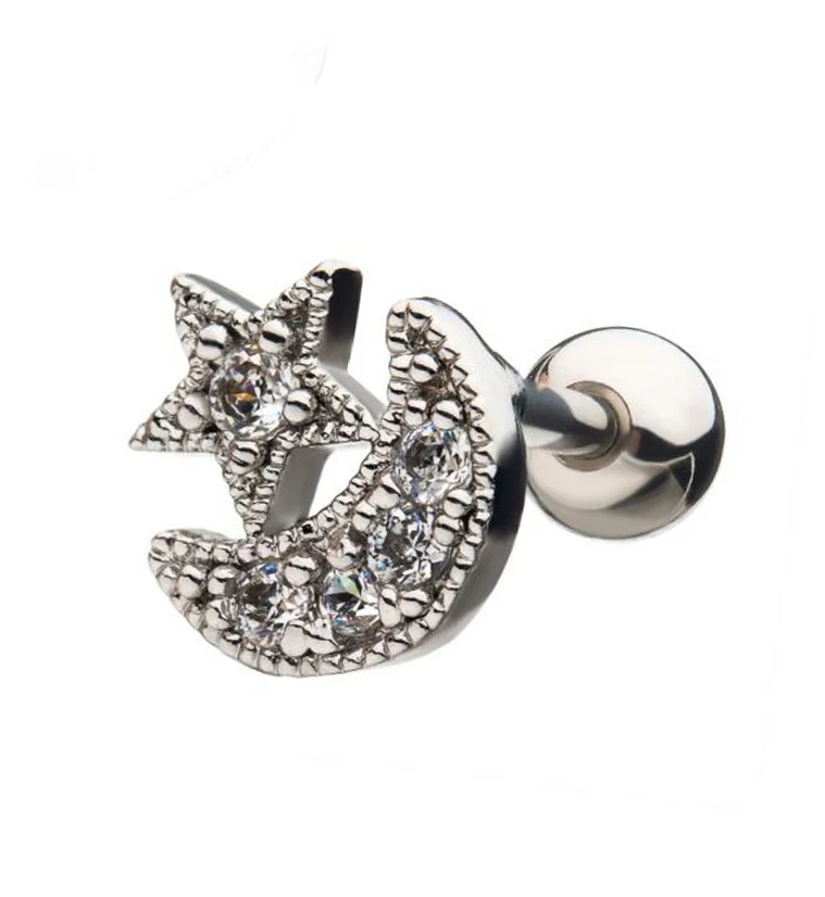 18G Star & Moon Cartilage Barbell