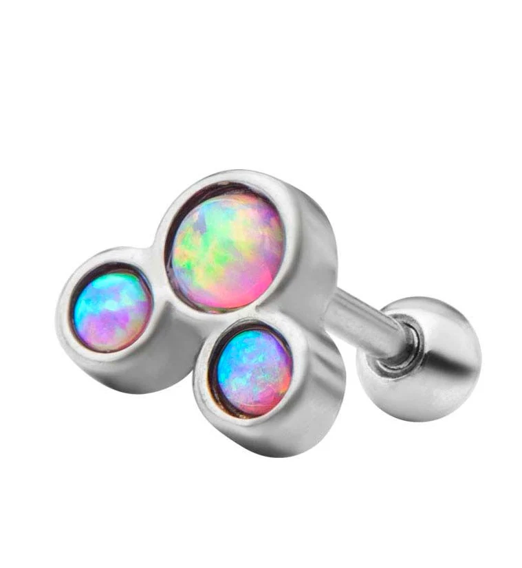 Blue Prong Set Triple Opalite Cartilage Barbell