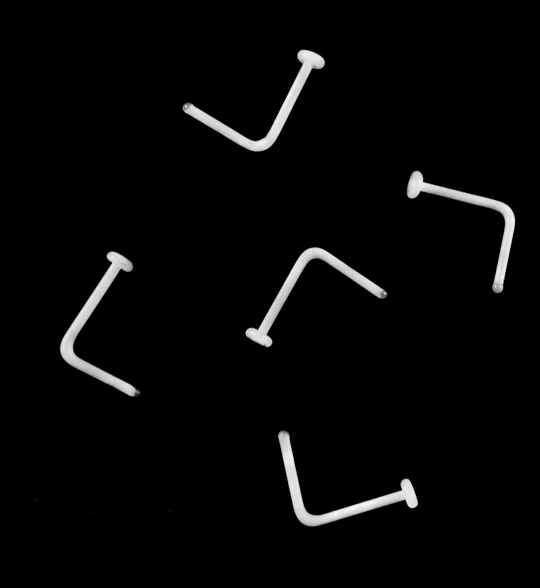 White Glass L Bend Nose Ring