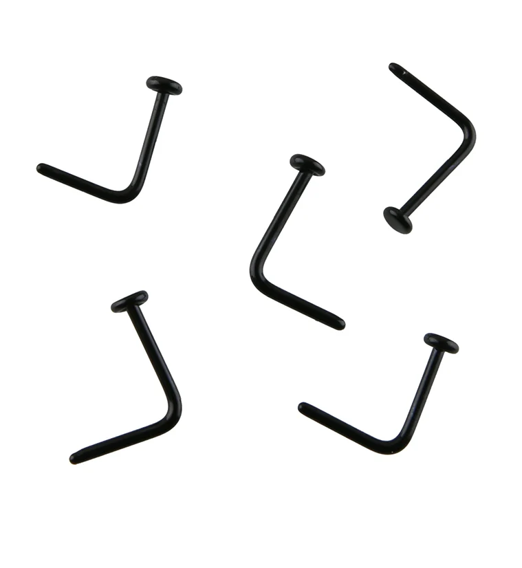 Black Glass L Bend Nose Ring