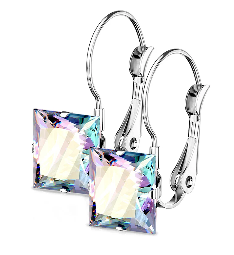 Rainbow Aurora CZ Square Clasp Earrings