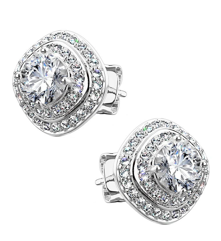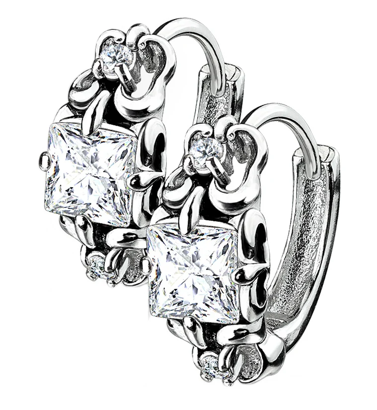 Clear CZ Square Clasp Earrings