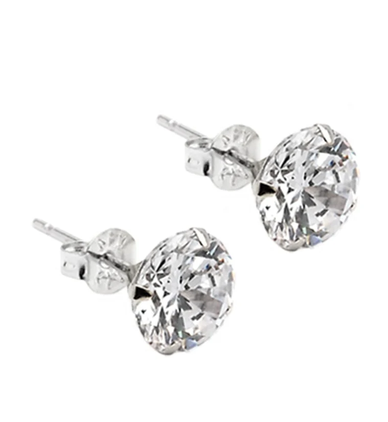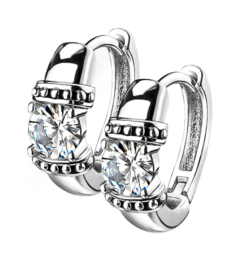 Single CZ Stainless Steel Clicker Earrings